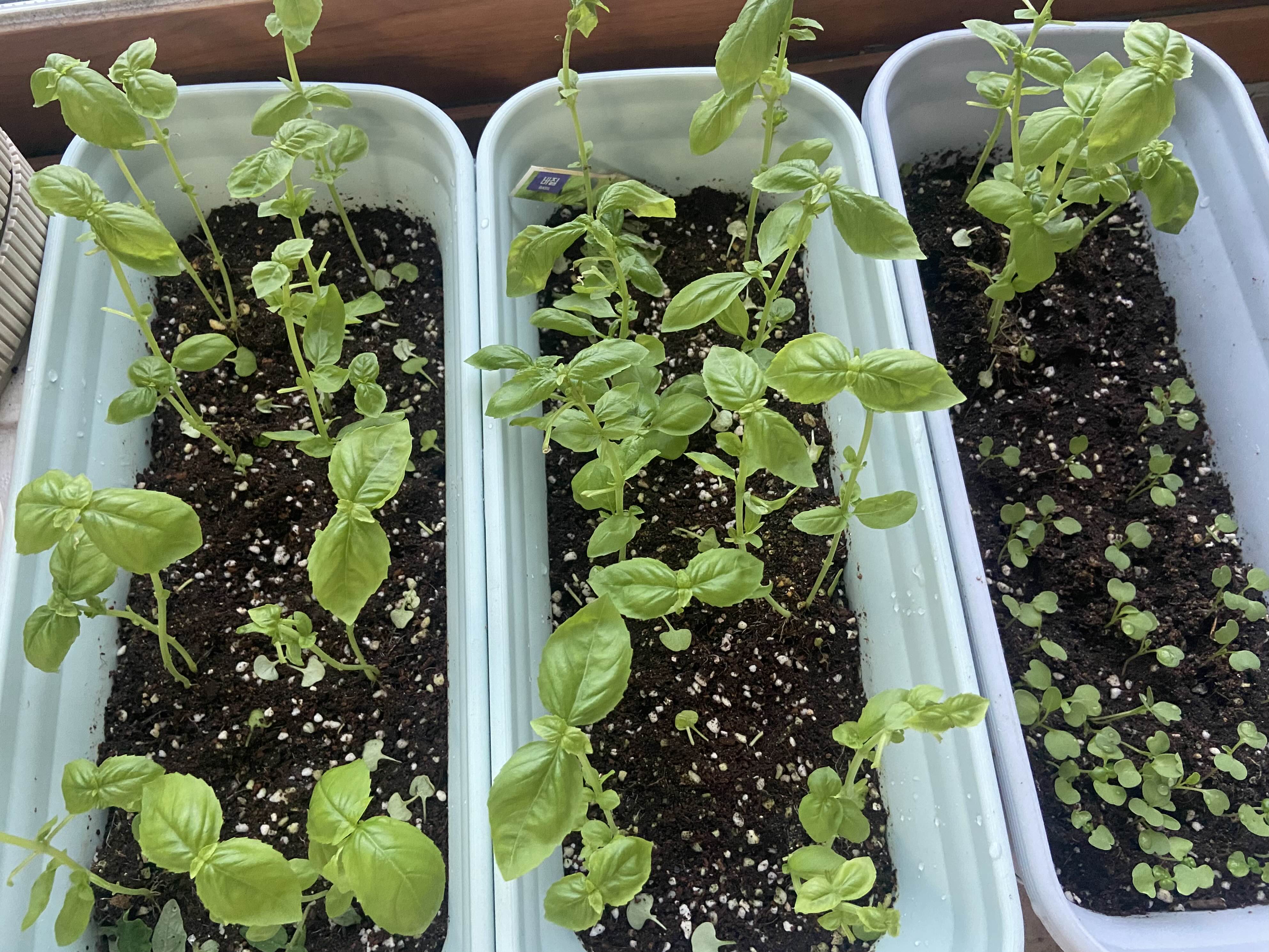 9.3. 두번째 씨뿌려 키움. 이번에는 루꼴라 씨도 뿌렸다.
